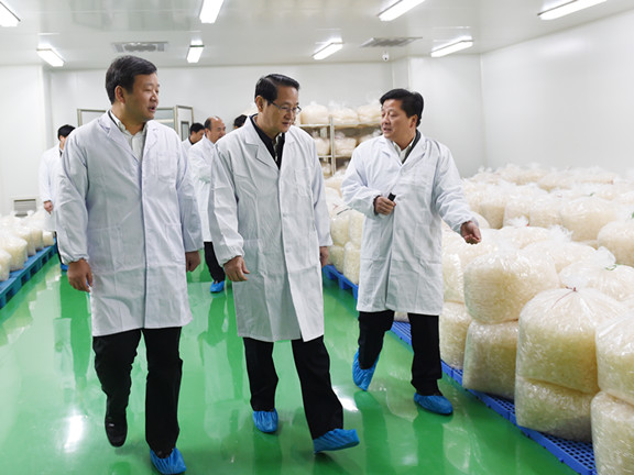 (上图:省委常委、长沙市委书记易炼红视察尔康制药木薯淀粉胶囊生产基地)