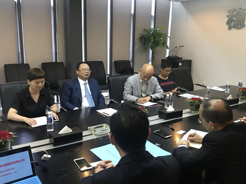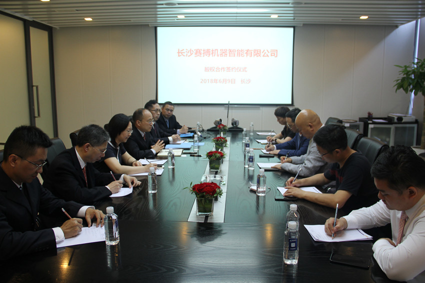 2018年6月9日下午,长沙赛搏机器智能有限公司股权签约仪式如期举行,标志着企业正式落户浏阳经开区。浏阳经开区党工委副书记、管委会主任谈文昌,长沙盛和金阳军民融合产业园运营管理公司、湖南机器智能研究院(筹)等企业负责人参加签约仪式。