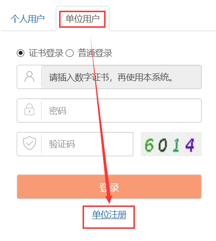 访问http://218.77.44.18:7011/csrc_portal/,登陆长沙市一体化人才综合服务信息平台。点击页面右侧“单位用户”,再点击“单位注册”进行用户注册: