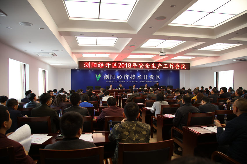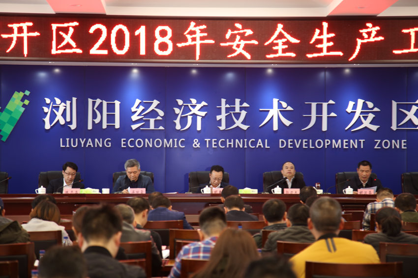 2018年3月23日下午,浏阳经开区召开2018年安全工作会议,总结过去一年园区安全生产工作,分析当前安全生产形势,安排部署2018年安全生产任务。浏阳经开区党工委书记郭力夫,长沙市长沙市安监局党组书记、局长胡春山出席并作重要讲话,党工委副书记、管委会副主任寻院豪主持会议,党工委委员、工会联合会主席、安委办主任胡汉圣作大会主题报告,管委会副主任陈志高宣读表彰决定。管委会各部门、园区企业代表、相关施工单位等148人参加会议。