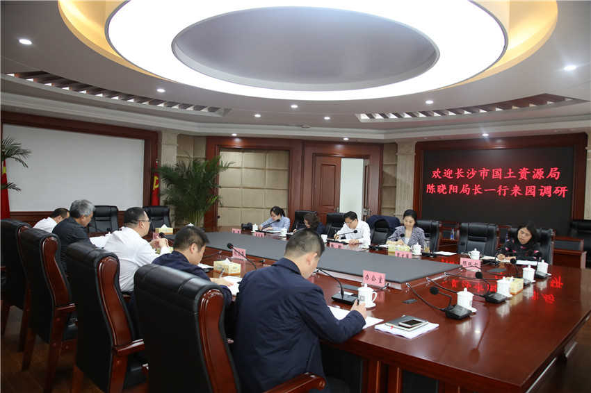 2018年4月3日,长沙市国土资源局局长陈晓阳一行来园区调研国土资源管理工作情况。浏阳经开区党工委副书记、管委会主任谈文昌,党工委副书记、管委会副主任寻院豪陪同调研。